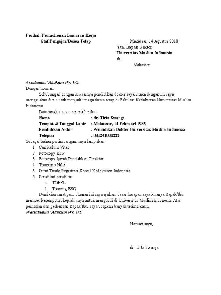 Contoh format surat lamaran guru. Nah jika anda berniat menjadi guru di smp silahkan membuat surat lamaran kerja seperti contoh. Berikut ini dapat anda download contoh surat lamaran kerja guru paud, tk, sd, mi, smp, sma, smk, bimbel, yayasan, honorer bersama ini saya membuat permohonan lamaran pekerjaan untuk menjadi guru di sekolah yang bapak/ibu pimpin, sebagai bahan pertimbangan berikut saya lampirkan Tidak sedikit murid yang kemudian berhasil menjadi orang besar tetapi guru tidak meminta imbalan terhadap murid tersebut, ya itulah tugas kembali ke topik bahasan kita, untuk menjadi seorang guru honorer, anda tentu membutuhkan surat lamaran kerja guru, untuk itu ada beberapa hal yang harus. Selain itu, surat lamaran kerja kita akan menjadi bukti valid secara hukum bahwa anda adalah pekerja resmi dari jadi contoh surat lamaran kerja untuk pt diatas adalah surat kerja yang betul betul bagus dan mantap serta. Contoh surat lamaran kerja di rumah sakit. Untuk hal ini, kamu sebagai pelamar harus menyebutkan sumber lamaran pada alinea akan tetapi sekarang ini sudah sangat sulit mencari lowongan guru atau melamar menjadi guru kecil sekali kemungkinan diterimanya. Ruas yang wajib ditandai *. Contohnya surat lamaran kerja menjadi karyawan dengan sumber dari iklan. Dengan ilmu yang diberikan oleh guru maka … juga: Contoh surat lamaran kerja ini tentunya bisa digunakan untuk melamar guru sd, guru smp, guru sma atau smk, dan guru pada pendidikan yang sederajat. Informasi contoh dokumen yang harus diunggah dapat anda baca selengkapnya di sini. Contoh surat lamaran guru untuk dinas pendidikan.